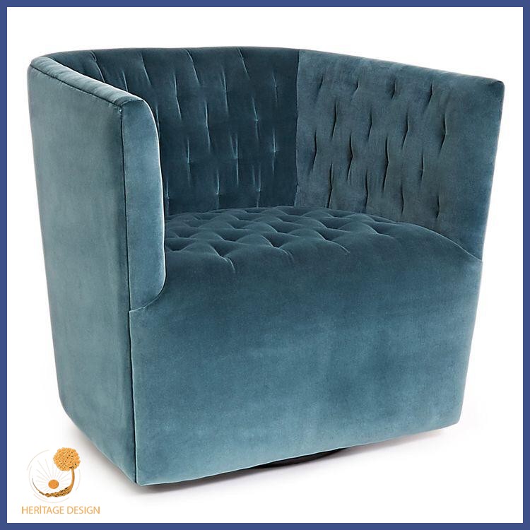 Düğmeli Mavi Kadife Berjer